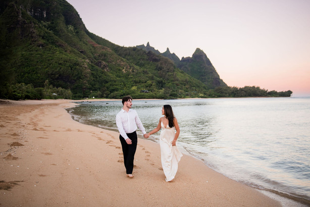 I had the honor of meeting up with Nadia & Cameron at one of my favorite beaches on the North Shore of Kauai just before sunrise. They were celebrating their recent engagement. We were welcomed by a cotton candy pink sky, along with an empty parking lot and serene stretch of coastline. We chatted a bit about their time on Kauai & vision for the morning & dove right into creating beautiful memories for them.